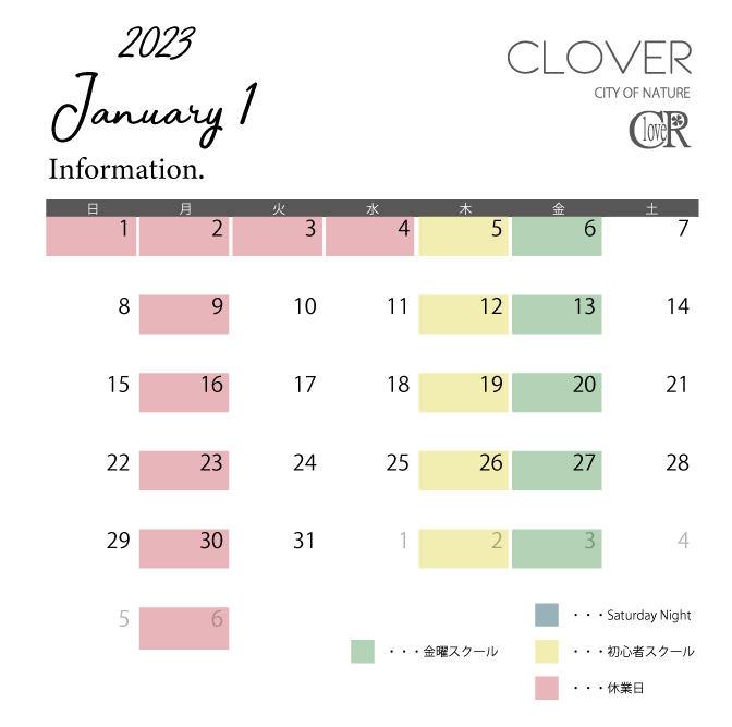 さて1月の営業案内です